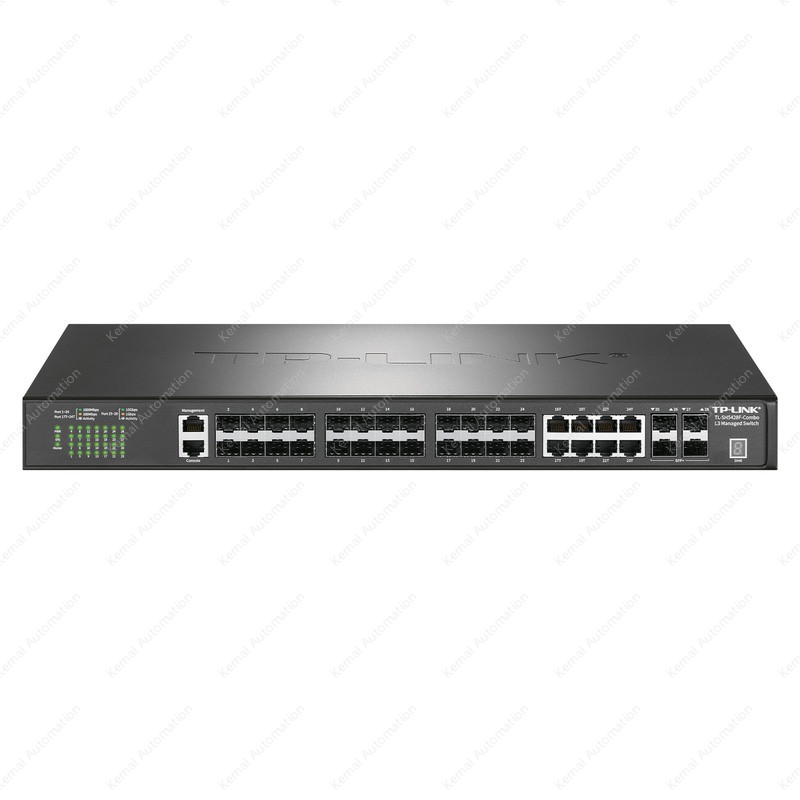 TL-SH5428F-Combo is a 5 series 10 Gigabit uplink stacked Layer 3 network management switch newly developed and launched by TP-LINK, which adopts a new generation of high-performance hardware and software platform, provides flexible full Gigabit access and cost-effective 10 Gigabit uplink ports, supports Layer 3 routing protocol, complete security protection mechanism, perfect ACL/QoS policy and rich VLAN functions, is easy to manage and maintain, and is suitable for medium and large network aggregation layers such as enterprises and campuses. Aggregation and access layer for small and medium-sized networks such as campuses.